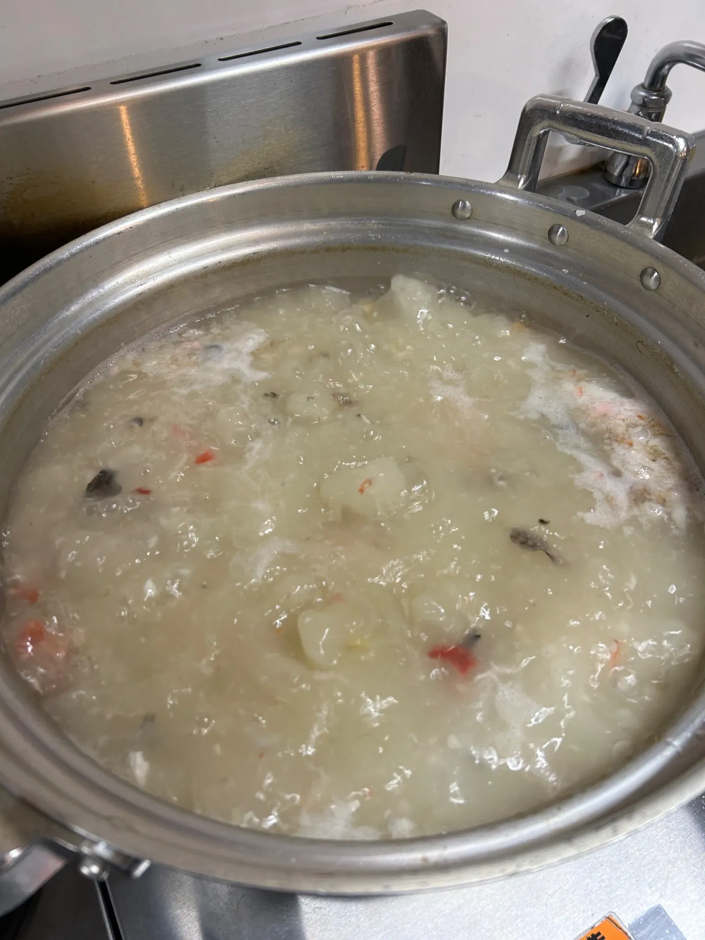 魚のあらを強火で一気に炊き出し、