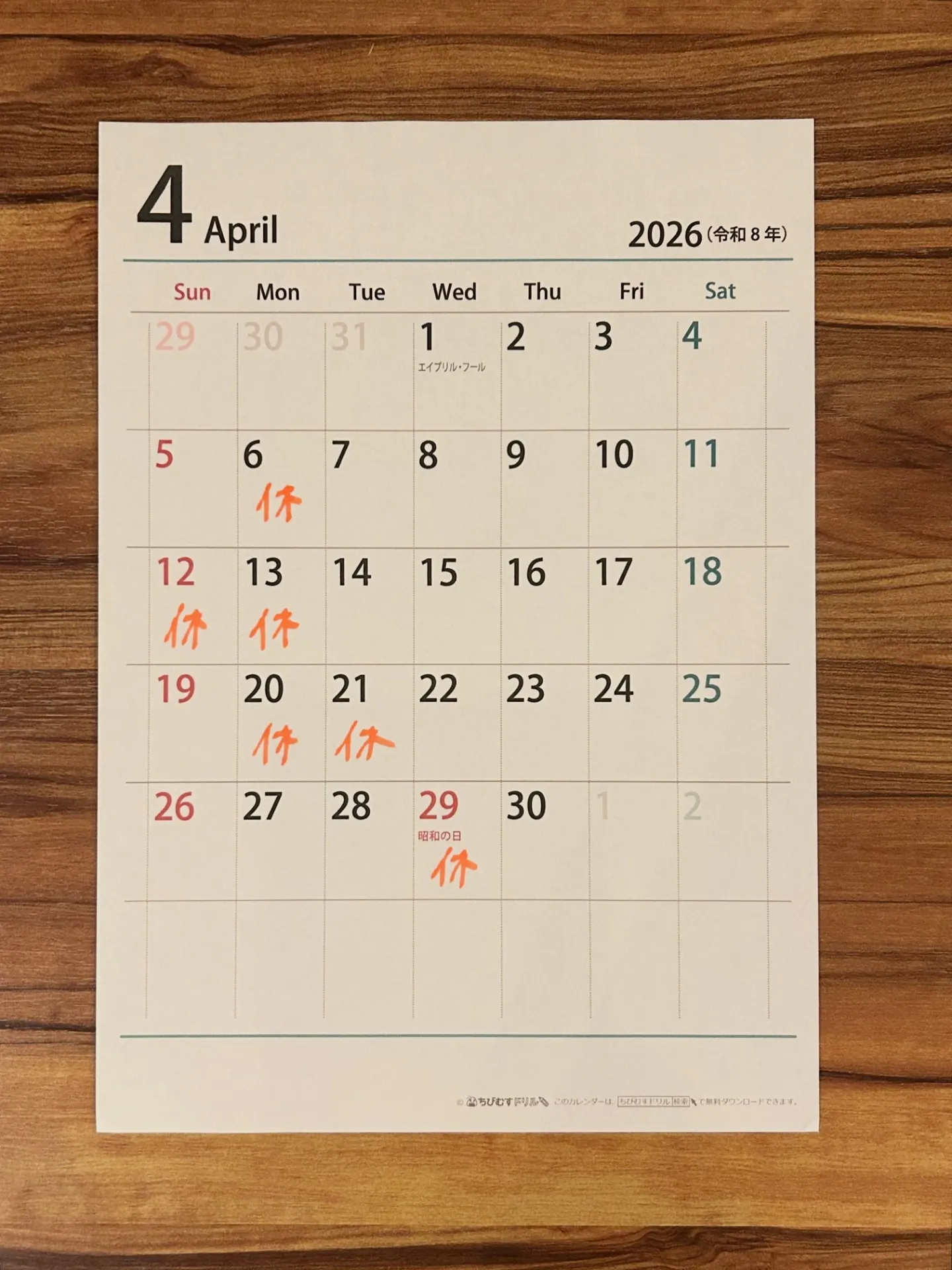 4月休業日のお知らせ